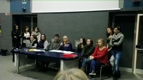 Non sto a commentare i diversi progetti, sia del biennio che del triennio: da “Psicologia e cinema”, al corso di Animazione, alla partecipazione a convegni e pubblicazioni, a “Dire, fare, studiare” percorso educativo e mediale di integrazione linguistica per studenti di origine straniera, a “Cobipad e media education” progetto per cui nell’attuale classe IV A i libri di testo sono stati sostituiti con il tablet: tutte esperienze che, come è stato di volta in volta esemplificato e ribadito, non solo introducono “novità” di contenuti e di strumenti ma necessariamente una ristrutturazione della didattica e dei rapporti fra gli studenti e fra insegnanti e studenti. Progetti che da un lato valorizzano il gruppo classe come soggetto collettivo in cui si progetta e sperimenta e dall’altro, come hanno ripetuto di continuo sia studenti attuali che ex allievi, si rapportano a ciascuno con le sue specificità e capacità. Un ex allievo ha detto “Io venivo da un’altra scuola e quando sono arrivato qui mi sono subito accorto che questo era un altro mondo: non ero un semplice studente, un numero; qui ero una persona.”