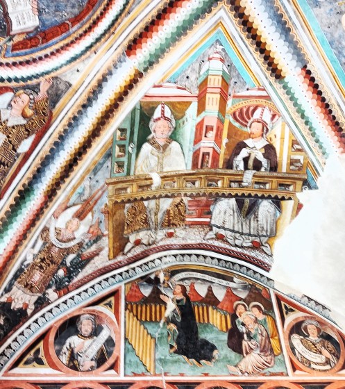 Nella vela della crociera a nord, sopra i primi sei apostoli, e l’incontro con Veronica, due angeli e i Padri della Chiesa Gregorio e Gerolamo.