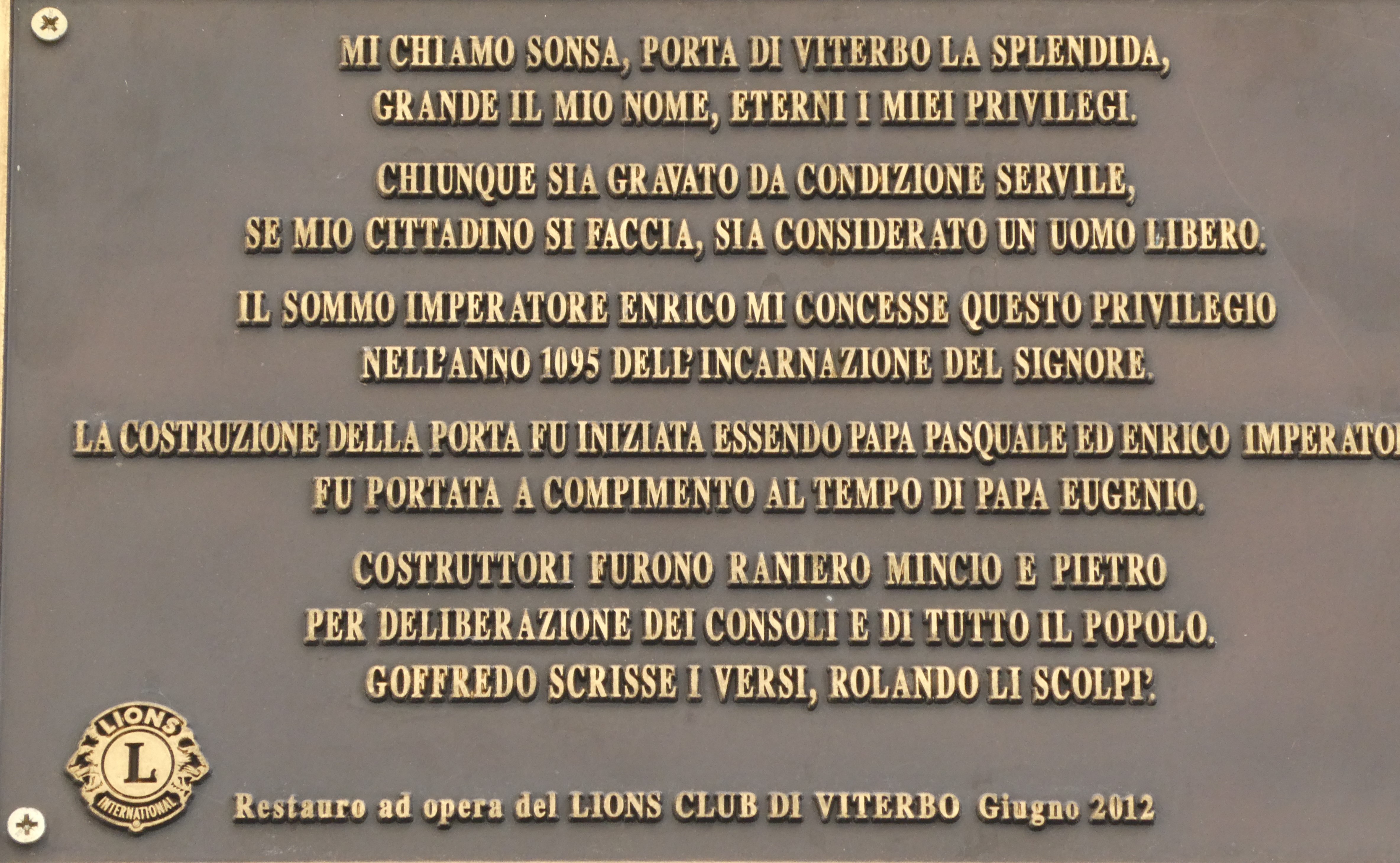Mi piace ricordare la lungimiranza dei Comuni e di molte città medievali che hanno favorito il loro sviluppo economico e civile accogliendo e liberando dalle servitù feudali le energie vive di coloro che hanno voluto fuggire dalla condizione servile diventando nuovi cittadini. La crescita delle nostre città nel tardo medioevo e oltre non potrebbe esser spiegata senza l’energico afflusso di questa nuova linfa. Questa voce della rubrica era già stata scritta, quando, tre settimane fa, sono stato a Viterbo e ho scoperto che dal 1095 “chiunque sia gravato da condizione servile” passando attraverso la Porta Sonsa (o Sonza) diventava cittadino libero.