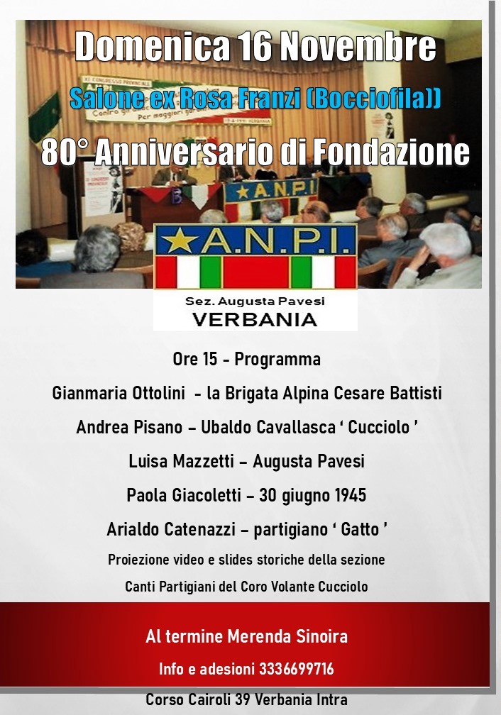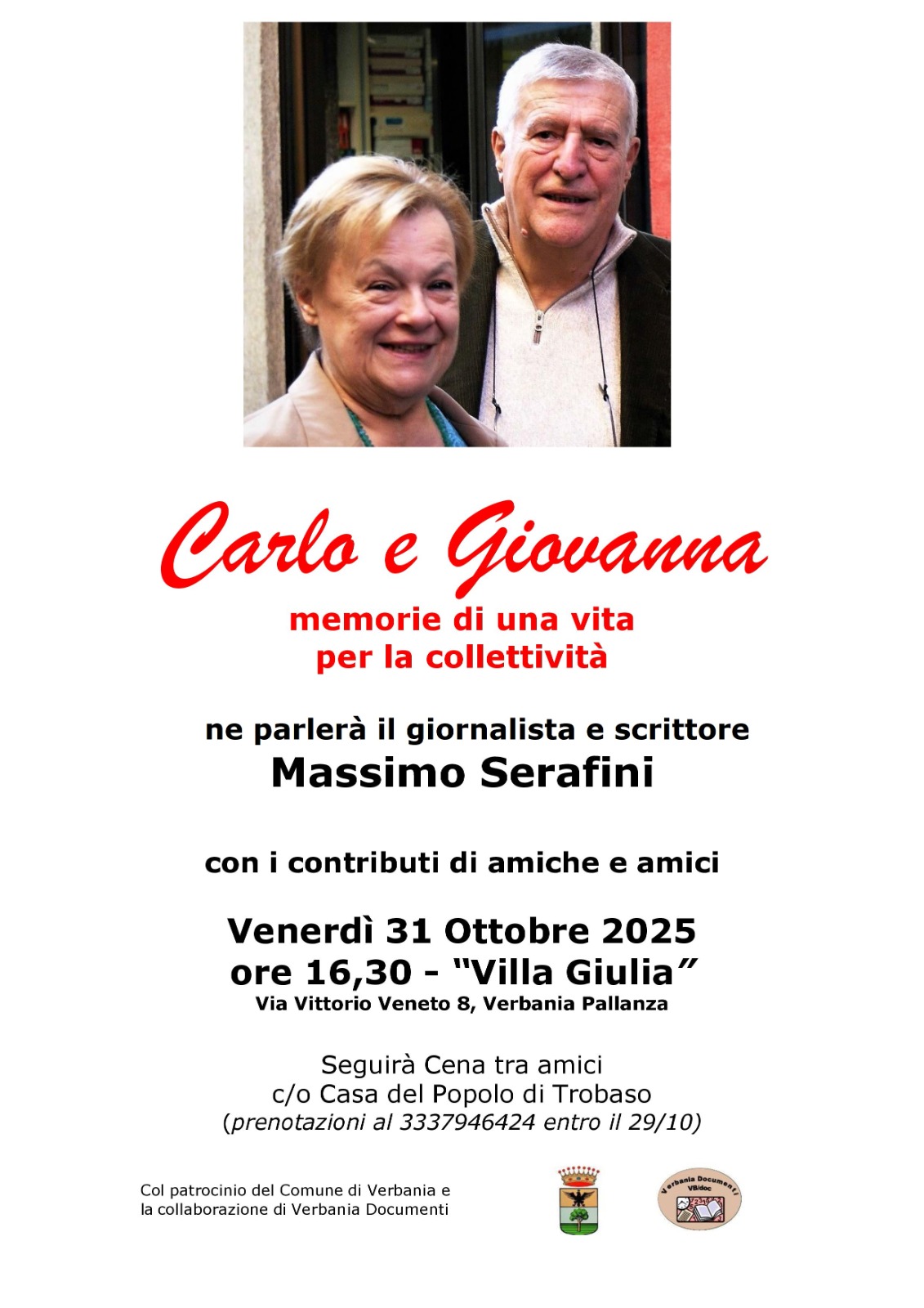 Un gruppo di amici e compagni che, anche in periodi diversi, hanno accompagnato e condiviso il loro ricco percorso di vita sia in iniziative sociali e pubbliche che in amichevoli momenti privati, si sono ritrovati per organizzare nel pomeriggio di Venerdì 31 ottobre dalle ore 16.30 presso Villa Giulia a Pallanza l’iniziativa