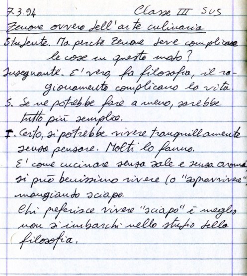 Scartabellando fra i miei vecchi quaderni ho trovato questa nota diaristica su una lezione di filosofia del 7 marzo 1994.