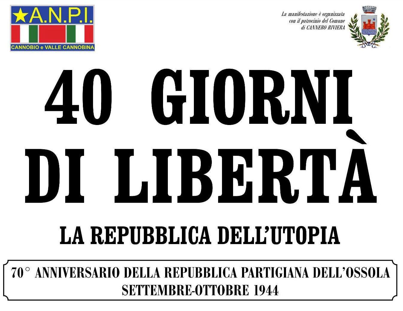 L’ANPI lo scorso 17 ottobre ha organizzato a Cannero una serata dedicata al 70mo anniversario della Repubblica Partigiana dell’Ossola (40 giorni di libertà – La Repubblica dell’Utopia) e mi ha chiesto un intervento su quell’esperienza e un richiamo alle altre “libere repubbliche” sorte allora in Italia. Ho così preparato una sintesi di quegli avvenimenti accompagnata da alcune riflessioni e comparazioni con l’oggi.
