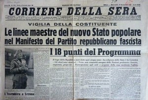 Molti di questi caratteri verranno amplificati durante il periodo di Salò (il fascismo repubblicano) dentro un richiamo al “fascismo sociale” delle origini, il rilancio dei sindacati fascisti e della concezione corporativa e il ruolo distinto e prioritario del partito (unico) fascista rispetto allo Stato[8], con i 18 punti della Carta di Verona del 14.11.1943).
