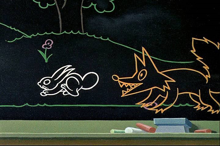 Il secondo, Education for Death [i], è un corto d’animazione (10’) prodotto dalla Disney nello stesso anno. È un caso abbastanza particolare di un utilizzo serio del cartoon, che rimane fedele, sia pur nella sua brevità, al testo originario. Dopo la trasfigurazione ironica della fiaba della Bella addormentata (una grassa Valchiria, la principessa Germania, svegliata e sollevata a forza su un destriero dal principe Hitler) le immagini diventano scure e si narra in quattro sequenze di come il piccolo Hans da bambino delicato e sensibile diverrà “un bravo nazista” che marcia, saluta, brucia i libri e che pensa, vede e dice solo quello che vuole il partito. La terza sequenza ci mostra infatti il piccolo Hans che “si ravvede” dopo esser stato punito dal maestro per essersi commosso per la sorte di un coniglio catturato dalla volpe.
