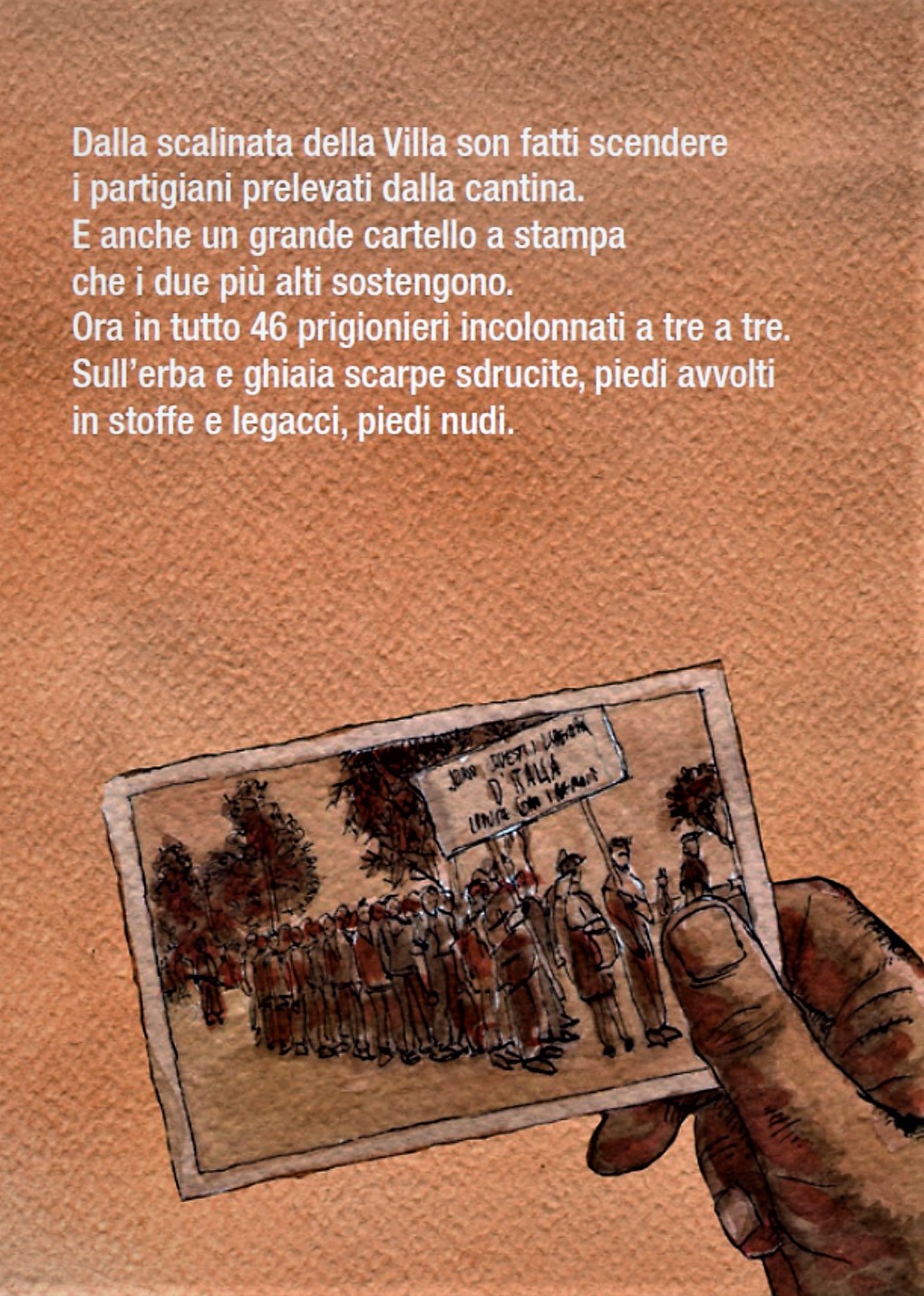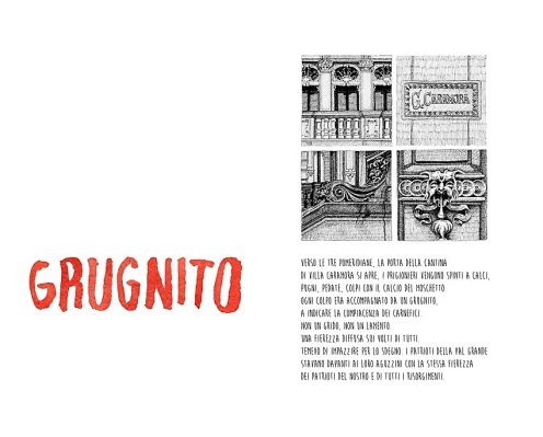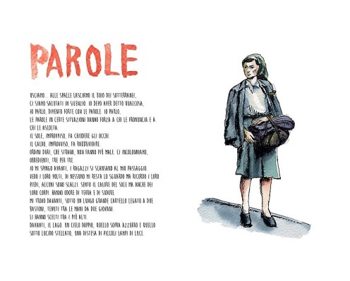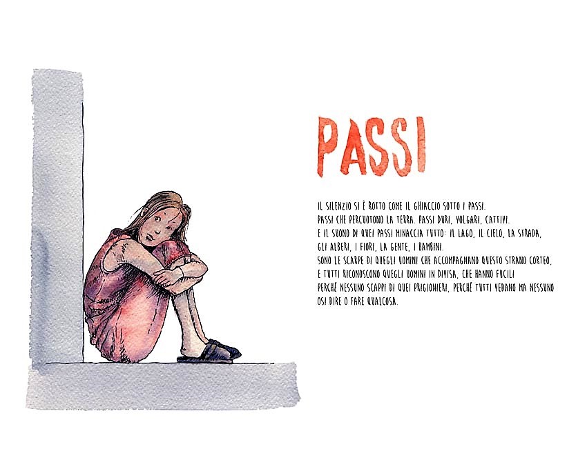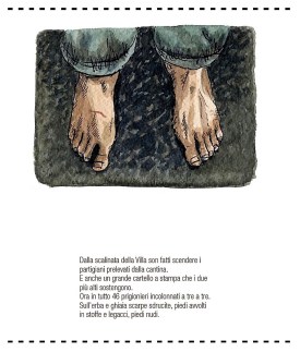 L’idea era di far raccontare la storia ai testimoni, al sopravvissuto, ai martiri, ai carnefici (non sono sicuro) attraverso parole e immagini. Una storia per frammenti che non seguisse un ordine temporale. Alla fine, la cronaca dei fatti accompagnata da illustrazioni in b/n (tipo Villa Caramora).