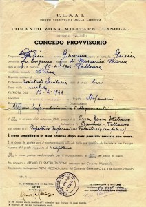 A Milano, chiesi consiglio sul da farsi. Era incerto, dibattuto tra l’importanza che il Servizio continuasse a funzionare e il pericolo che correvo. Mi chiese, molto esplicitamente, se me la sentivo di rischiare. Risposi di sì ma che ero preoccupato per i compagni più vicini. Allora mi comandò di passare tutte le consegne all’infermiera Ottolini, che avrebbe diretto il Servizio, e mi ordinò di raggiungere al più presto in bassa Val d’Ossola, la costituenda formazione “Valtoce” con il grado di Commissario Politico di Brigata per il Partito d’Azione.