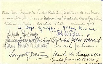 La zia era nata a Pallanza nell’aprile del 1904 e aveva studiato fino alla V Ginnasio; la sua vocazione fu poi quella di infermiera iscrivendosi pertanto al primo e al secondo corso di Infermiere della Croce Rossa ottenendo in entrambi i casi il diploma con il massimo dei voti e operando tra il 1935 e 1938 come infermiera all’Ospedale di Pallanza.