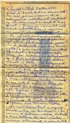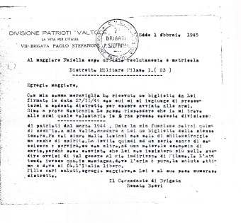 Sino a prova contraria Le posso rispondere che io mi trovo alle armi quale volontario in forza presso codesta divisione di patrioti dal marzo 1944. Data la mia funzione potrei quindi anch’io, a mia volta, mandare a Lei un biglietto dello stesso tenore. Ma noi siamo molto lontani non solo di chilometraggio ma anche di spirito. La invito quindi ad un serio esame di coscienza: servirà, se non altro, ad una notevole economia di carta, perché sono convinto che Lei non insisterà più nello spedire avvisi di tal genere al mio indirizzo di Milano. Io L’attendo invece qua, in montagna, dove l’aria è pura, la salute ottima è dove si fa l’Italia libera.