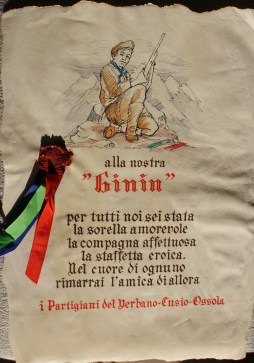 Giannina, crocerossina e partigiana col nome di battaglia “Ginin”, faceva parte della brigata Stefanoni – Divisione Valtoce che operava sopra Stresa, sul Mottarone. Era la zia di mio nonno.