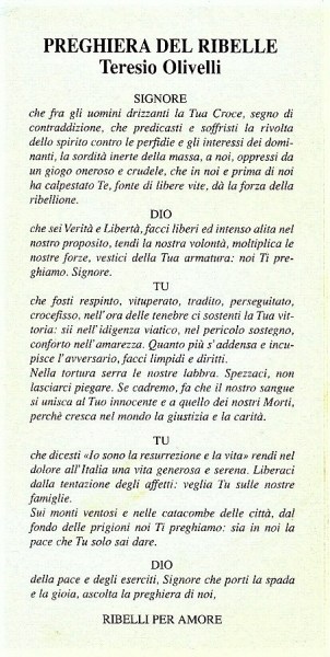 Sino a prova contraria Le posso rispondere che io mi trovo alle armi quale volontario in forza presso codesta divisione di patrioti dal marzo 1944. Data la mia funzione potrei quindi anch’io, a mia volta, mandare a Lei un biglietto dello stesso tenore. Ma noi siamo molto lontani non solo di chilometraggio ma anche di spirito. La invito quindi ad un serio esame di coscienza: servirà, se non altro, ad una notevole economia di carta, perché sono convinto che Lei non insisterà più nello spedire avvisi di tal genere al mio indirizzo di Milano. Io L’attendo invece qua, in montagna, dove l’aria è pura, la salute ottima è dove si fa l’Italia libera.