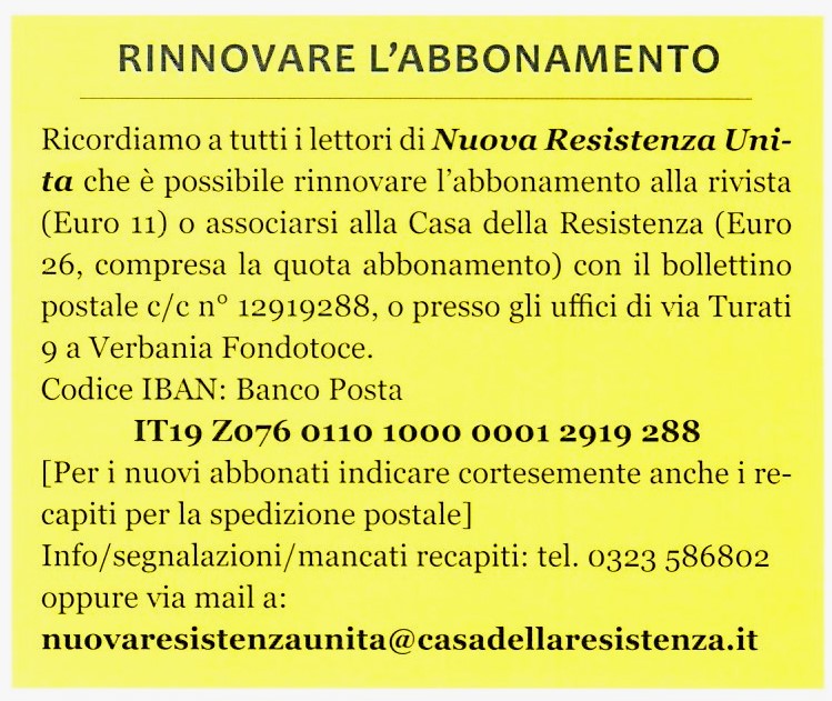 È possibile richiederne copia direttamente presso la Casa della Resistenza di Fondotoce o, ancor meglio, abbonandosi.