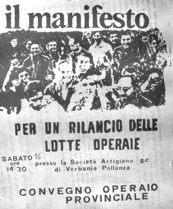 Tra le iniziative realizzate dal neonato “Centro di iniziativa comunista Il Manifesto” la più importante è stata senz’altro l’organizzazione del “Convegno provinciale operaio. Per un rilancio delle lotte operaie” del 16 gennaio 1971 presso la Società Artigiana di Pallanza con la relazione introduttiva di Sergio Saccani.