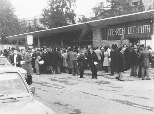 Interrotte le trattative alle ore 13:30 di oggi, la CIF e alcuni membri del direttivo delle 3 OO.SS. hanno occupato la fabbrica. L’occupazione è avvenuta contemporaneamente all’assemblea convocata presso il Cinema Impero di Intra; la notizia coglieva di sorpresa i lavoratori presenti, ma – soprattutto – le forze dell’ordine, alle quali veniva così impedita la possibilità di fare un picchettaggio che ostruisse le entrate della fabbrica. È giusto premettere che già ieri l’assemblea dei lavoratori aveva votato alla unanimità per l’occupazione di fabbrica in caso di mancato accordo; solo 3 su circa 1300 presenti in sala erano contrari; oggi un’altra votazione ha confermato la volontà precisa dei lavoratori (meno i soliti 3).» [v]