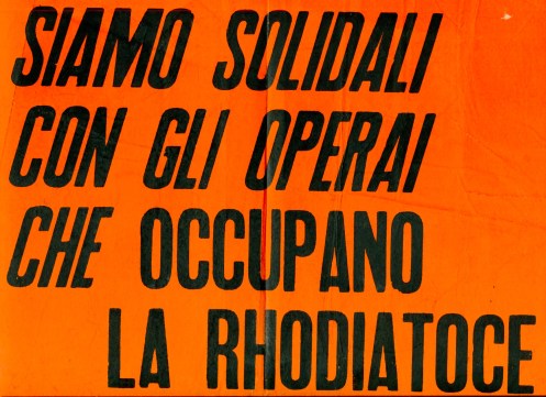 Una linea volutamente al di qua dell’idea e della prospettiva partitica, volta a stimolare, sostenere e collegare le lotte. Le rivendicazioni e i primi scioperi degli operai della Rhodiatoce di Pallanza, culminati nella occupazione della fabbrica, sono stati il più significativo banco di prova di questa prospettiva.