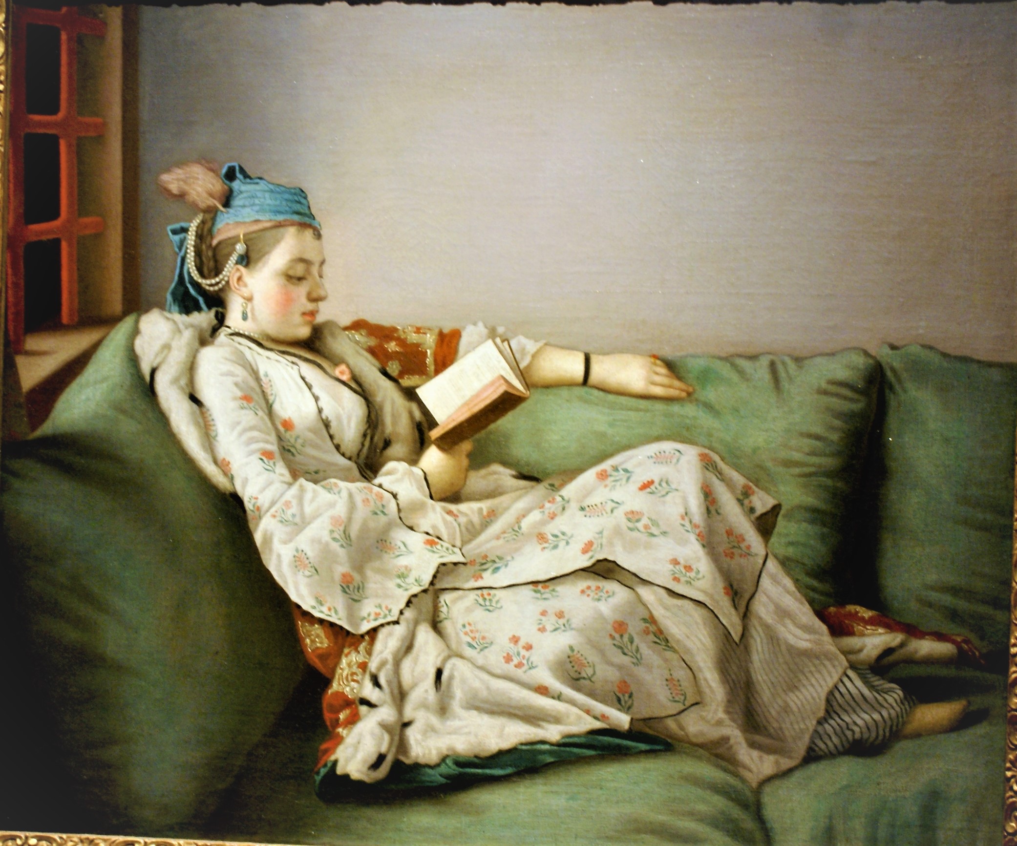 «Questo dipinto precede di poco l’adesione di Oppi al gruppo dei Sette pittori del “Novecento”, ma appartiene ancora a una fase della sua ricerca caratterizzata da un segno secco e preciso e da tinte piatte e brillanti. Alle spalle della figura si nota lo stesso tipo di pavimento a scacchi bianchi e rossi di un’opera del 1919, Il chirurgo (1919), dove le piastrelle scandiscono lo spazio con una prospettiva che appare ribaltata in avanti. Anche in questo dipinto, a ben guardare, la scacchiera non è disegnata con uno scorcio corretto e ricorda, piuttosto, l’ingenua prospettiva intuitiva dei primitivi italiani. Anche il paesaggio alla finestra, quasi un quadro nel quadro, ha un sapore trecentesco. La jeune fille sentimentale si sostiene il capo con aria trasognata e tiene in mano un libro con sovraimpresso il soprannome della moglie dell’artista, Adele Leone, ritratta in altre opere di Oppi.»