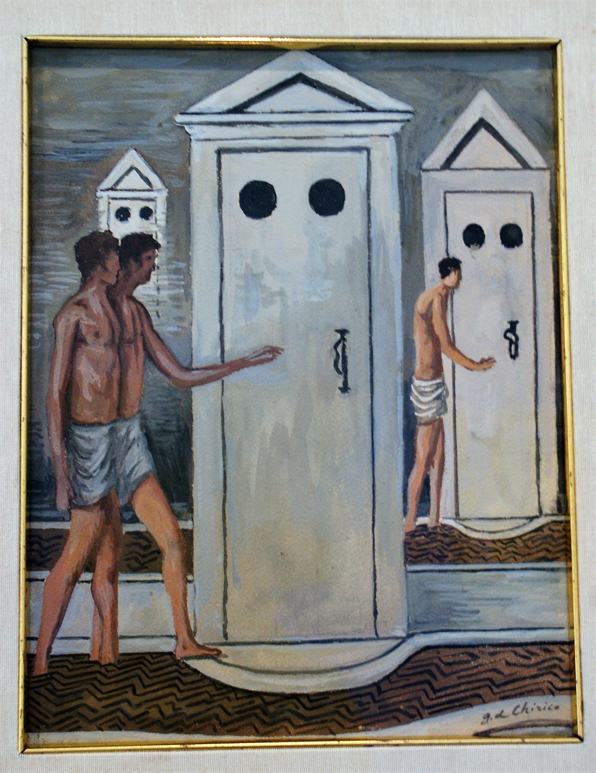 Concludo questa retro-visita della mostra “Un’eterna bellezza. Il canone classico nell’arte italiana del primo Novecento” al Mart di Rovereto con il dipinto, di un autore di origine novarese, di esplicita esaltazione della bellezza dei corpi femminili raffigurati in una sorta di tempo “sospeso” e in contrappunto con i colori scuri e le linee geometriche del contesto (la stanza, la finestra, il cubo su cui poggia una mano). Opera che, in relazione alla situazione rappresentata e alla sua titolazione, è stata variamente interpretata e vuol probabilmente rapportarsi ad una tradizione pittorica rinascimentale. È stata acquistata dalla Direzione Generale della Rai di Torino, campeggia nella Sala Casorati della Direzione di Torino di via Cavalli ed è l’opera più richiesta della vasta collezione artistica della RAI per esposizioni sia all’estero che in Italia.