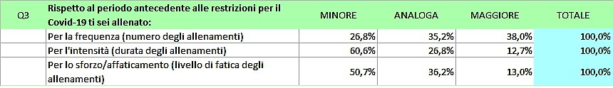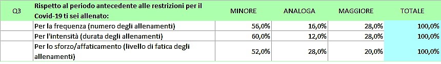Allenamenti: raffronto con il periodo antecedente alle restrizioni