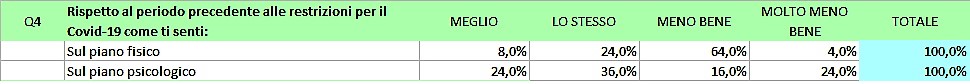 Raffronto con il periodo precedente sul piano fisico e psicologico